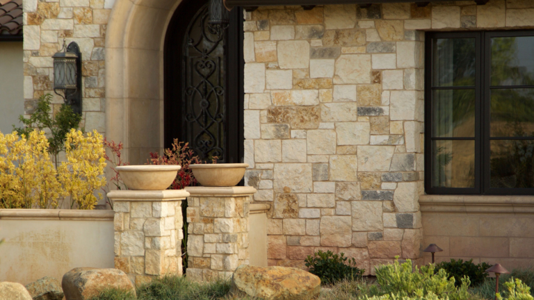 Cottage Cream Traditional displays a blend of light cream, beige, and occasional gray stones in a rectangular format. The surface textures range from smooth to moderately rough, with some blocks showing fossil-like markings. Color variation is subtle but present, lending a natural, aged appearance. Mortar joints are thin and uniform, emphasizing the clean linear arrangement.