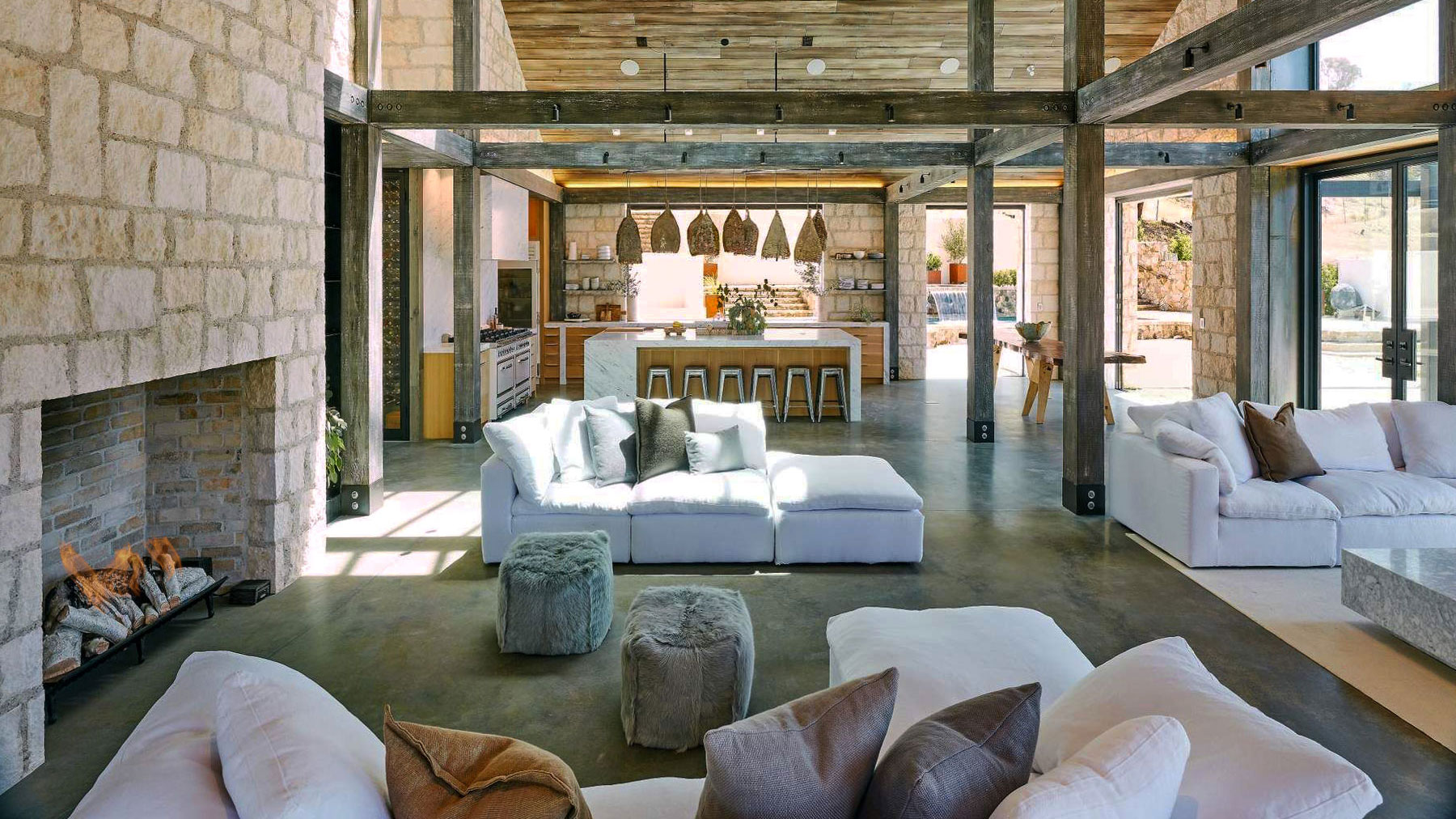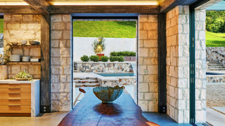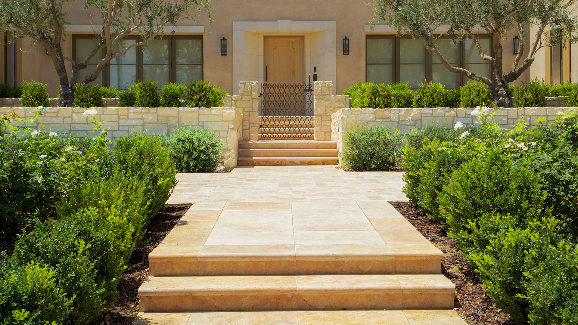 Cream Traditional features uniformly rectangular stones in a light, beige-to-off-white color palette. The surface texture is lightly chiseled, with minimal variation in color and tone across the pieces. Mortar joints are consistent and slightly recessed, contributing to a clean, organized appearance. The overall look is bright, neutral, and understated.